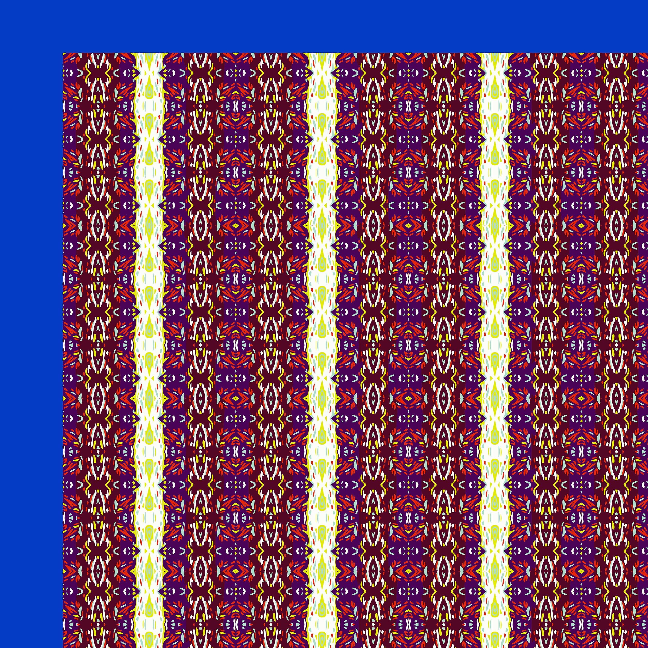 This design say it all high end luxurious opulent designer accessories for her and a touch of mystic from this textile designer making forward classic and a designer look to be seen with for many years to come a real modern classic twist in this design. Geometric colorful strioe scarf and rustic textures, designer collection scarf. Blue and red markings.