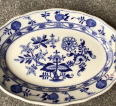 It was produced in the 1890's. Vintage Cauldon Meissen Blue Onion Porcelain Oval Platter/Plate 10” 1b