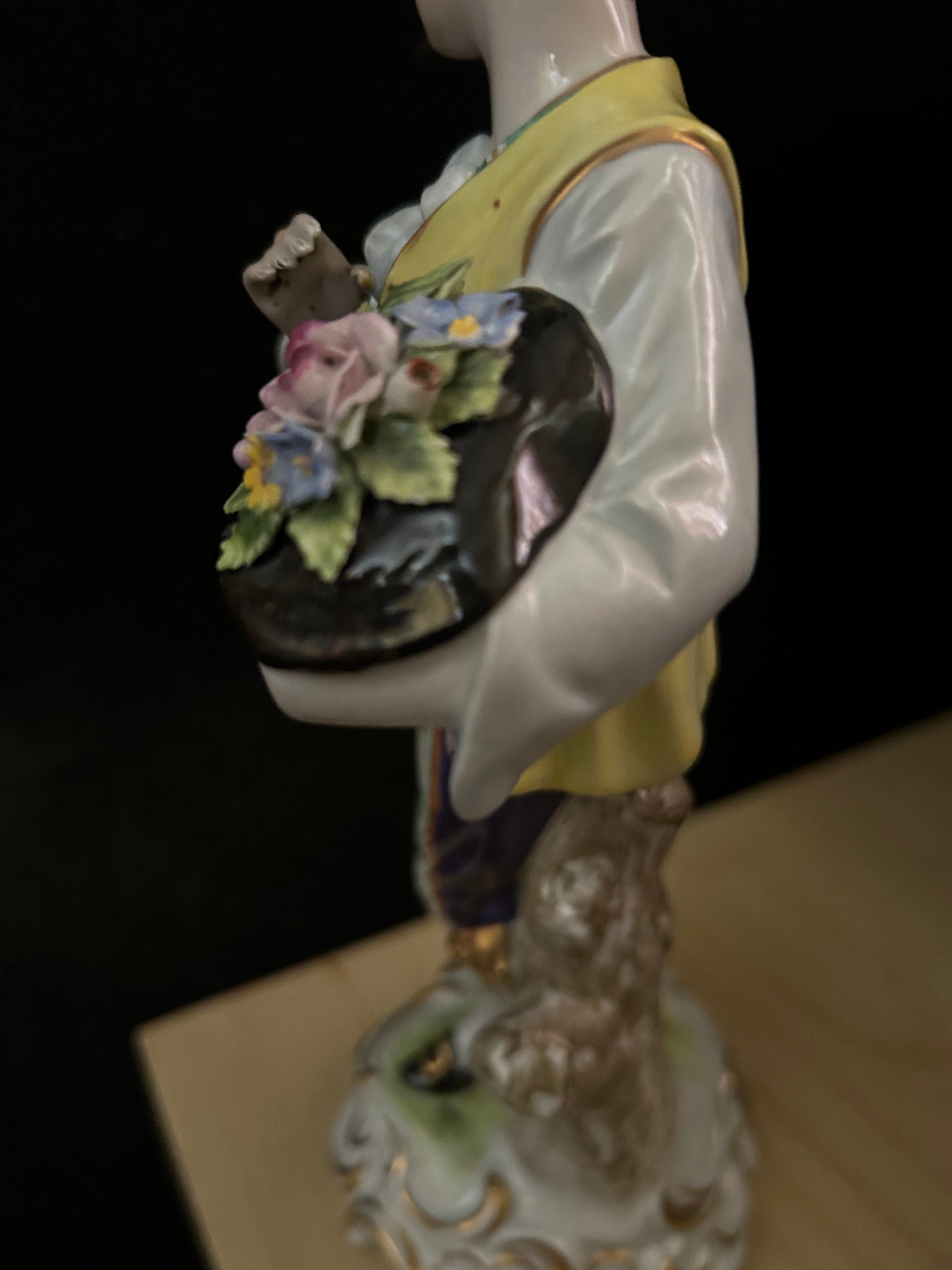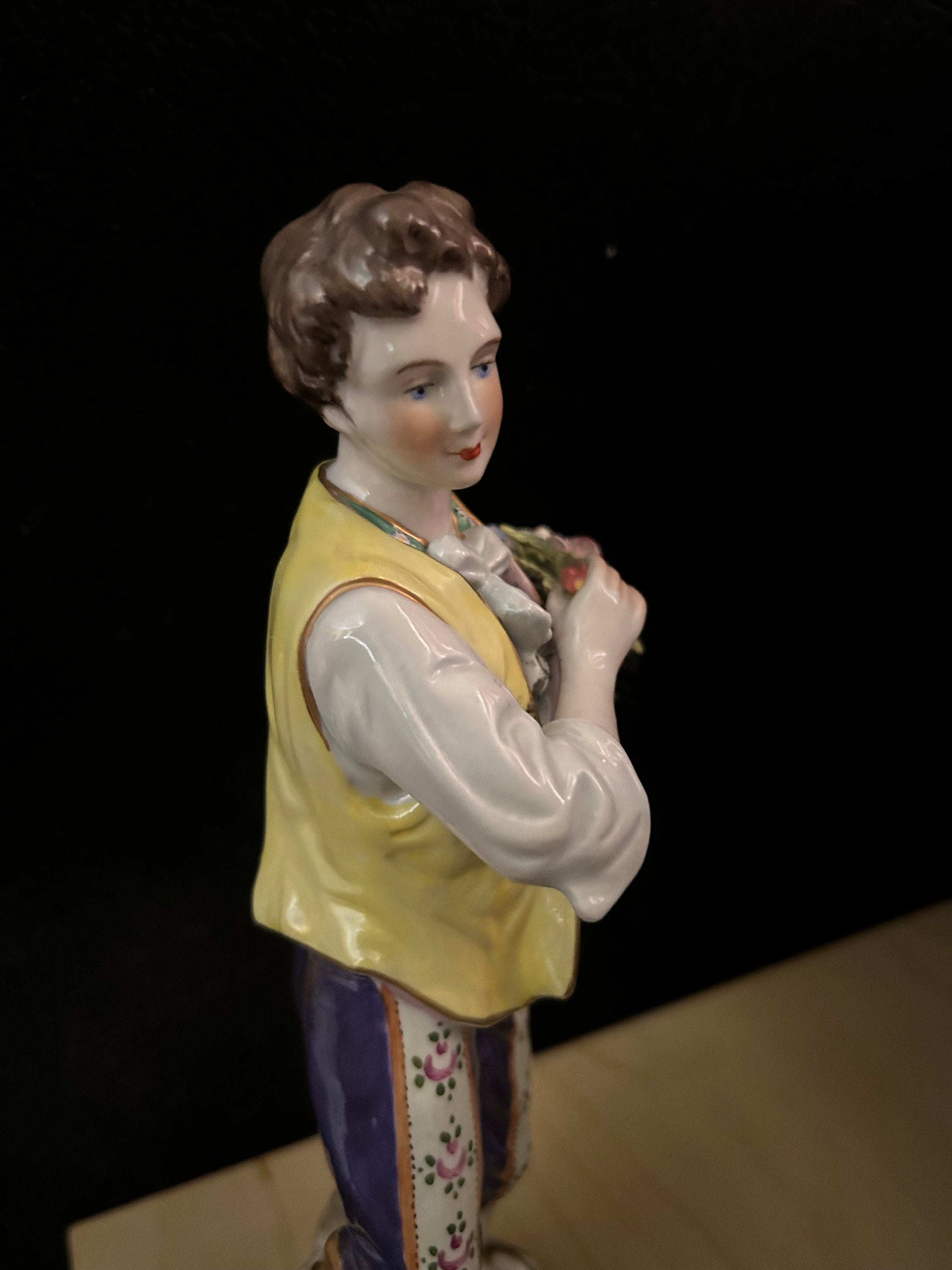 This fine piece of porcelin, Vintage Large Italian Porcelain Figurine of Young Man with Flower by Capodimonte
