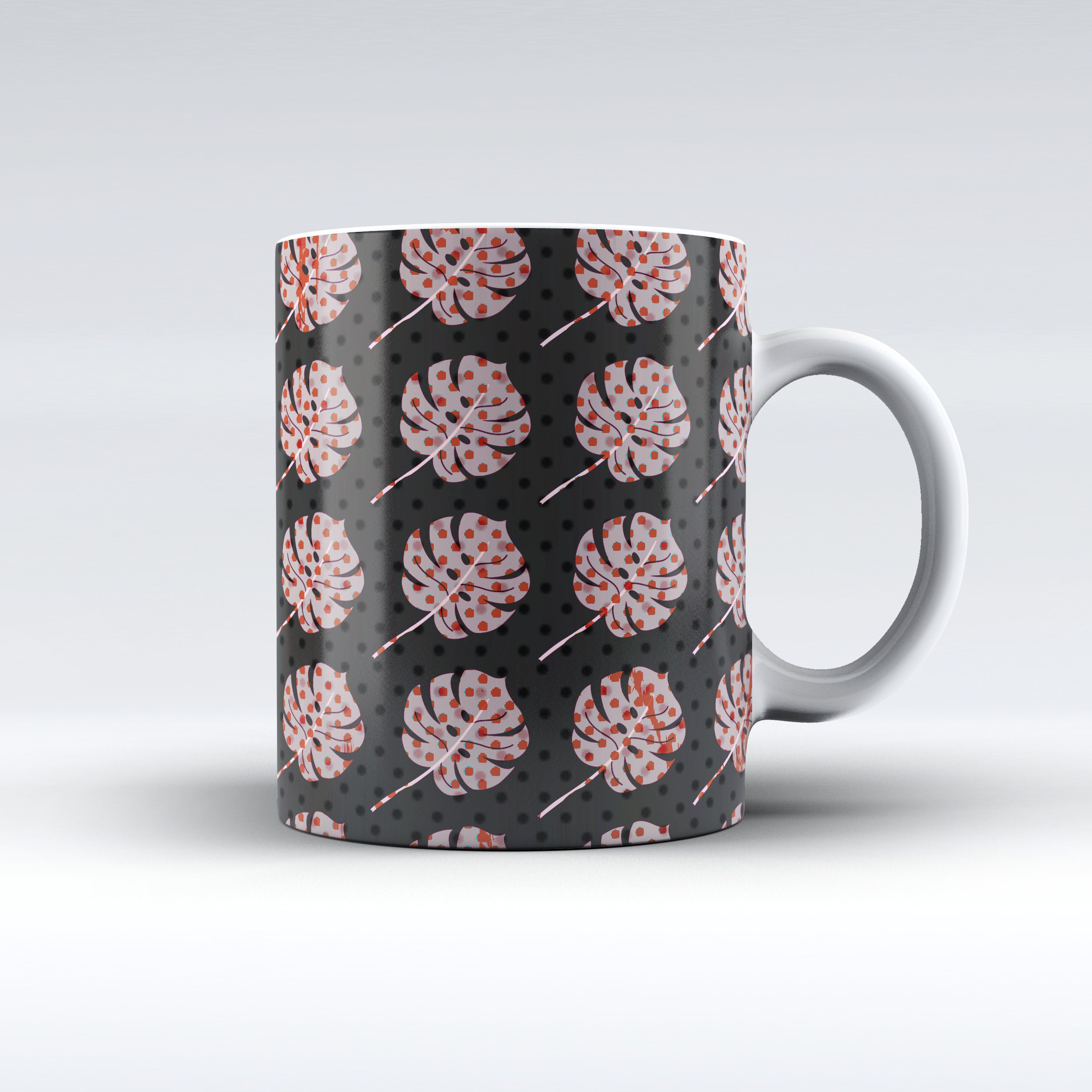 Palm tree leaves and spots original design mugs by Hooman, A delightful modern fresh abstract painted design by hooman khaknegar moghaddam, made to order, and despatch in 3-5 days and about 8 days postage. its a 11 oz, special coated ceramic cup using the best techniques.