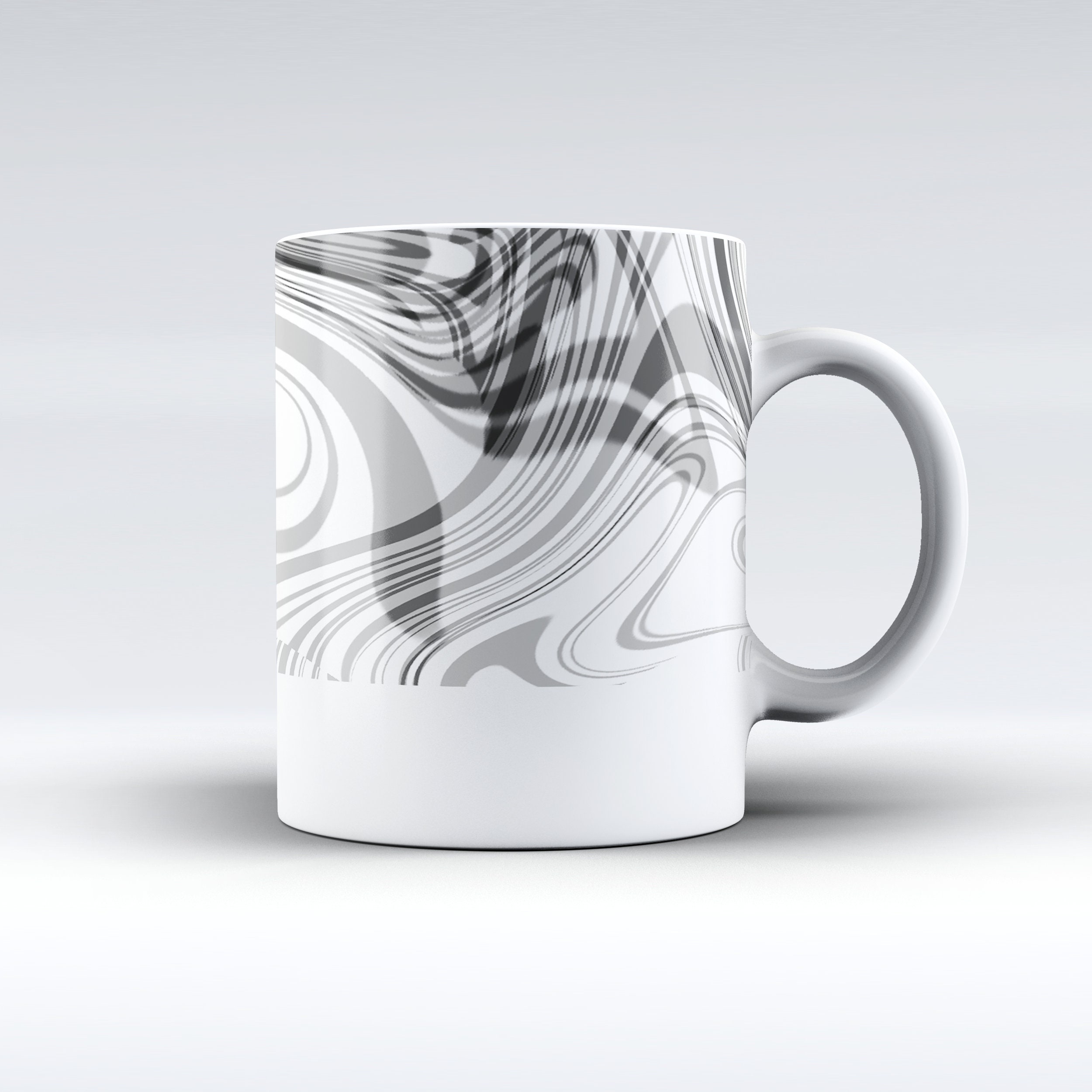 A delightful modern fresh abstract painted swirl design by hooman khaknegar moghaddam, made to order,in GREY SWIRL MARBLE EFFECT, stretching the front as shown and back of cup. Despatch in 3-5 days and about 8 days postage. its a 11 oz, special coated ceramic cup using the best Techniques.